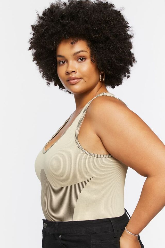 Forever 21 Women S Seamless Striped Bodysuit In Sandshell Cypress 2x Connecticut Post Mall